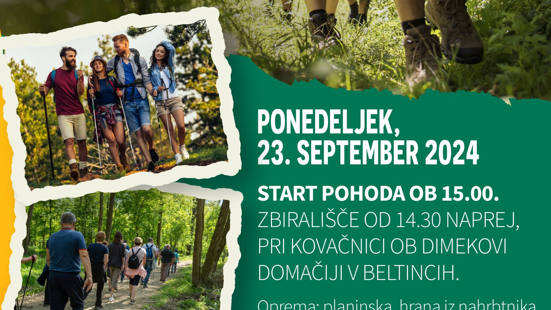 BeltinciV ponedeljek, 23. septembra 2024, vabimo na pohod ob Dnevu slovenskega športa. Start pohoda bo ob 15.00, z zbiranjem od 14.30 dalje, pri kovačnici, ob Dimekovi domačiji v Beltincih.