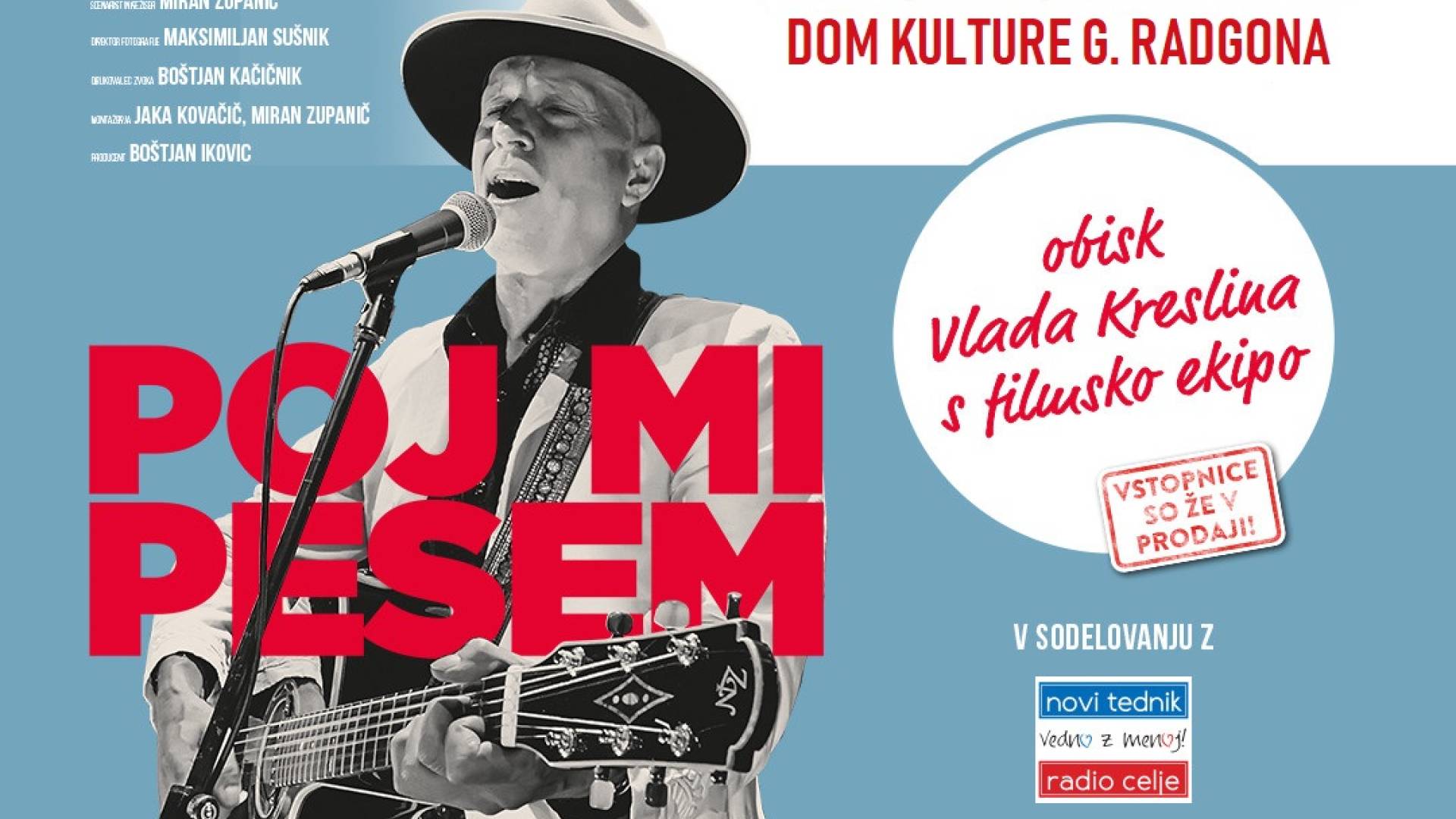 Kulturni dom Gornja RadgonaVabljeni na projekcijo celovečernega dokumentarnega filma "Poj mi pesem" enega in edinega Vlada Kreslina, ki nas bo s svojo filmsko ekipo tudi obiskal in pozdravil.