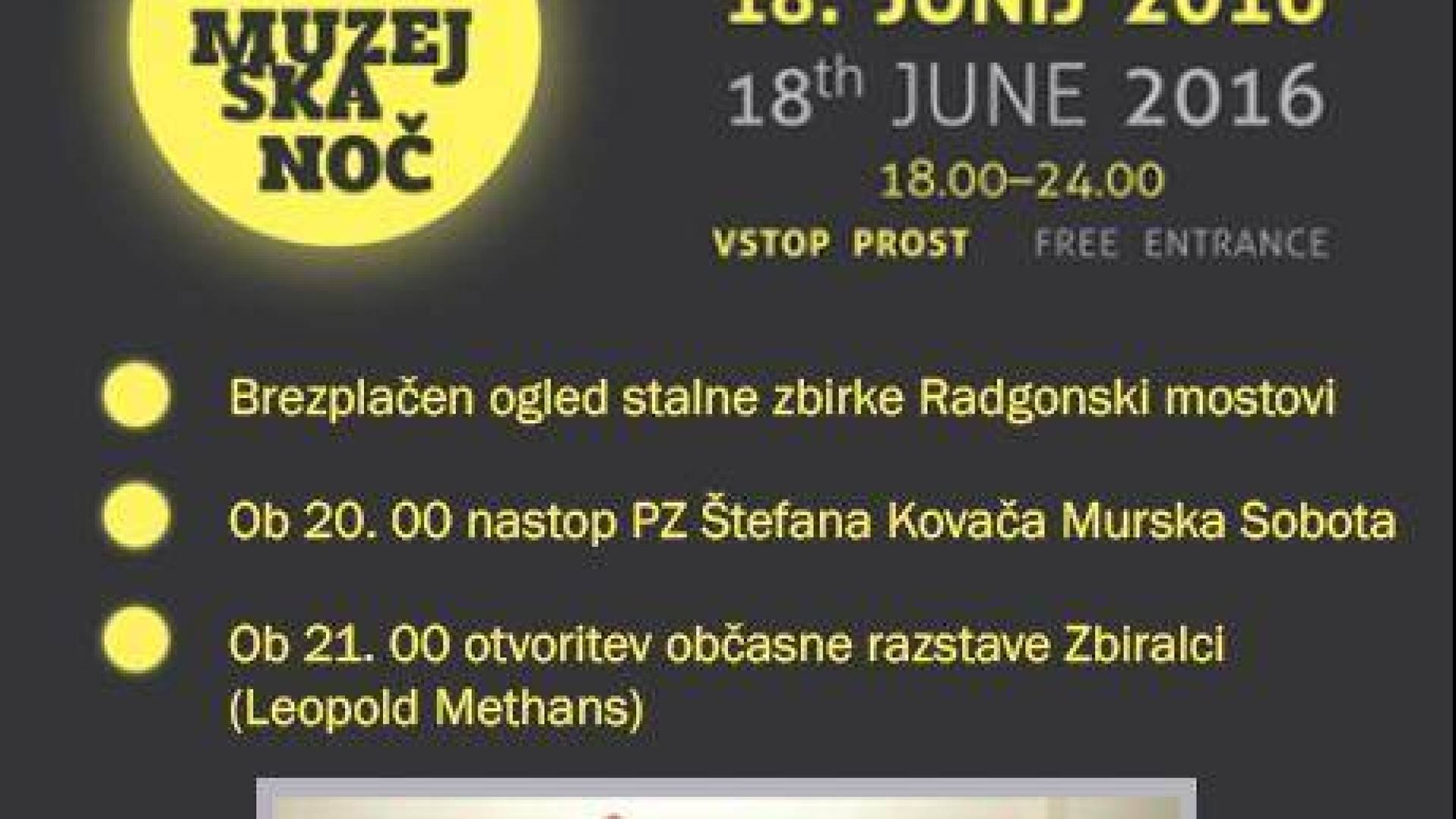 Poleg brezplačnega ogleda muzejskih razstav bo dogodek požlahtnil koncert pevskega zbora Štefana Kovača iz Murske Sobote ob 20.00.