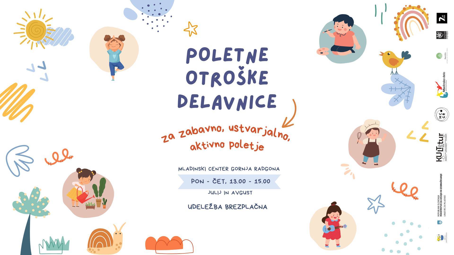 Vabimo vas na nepozabne poletne delavnice, ki se bodo odvijale v Mladinskem centru Gornja Radgona v mesecu juliju in avgustu za otroke od 6.-12. leta starosti!