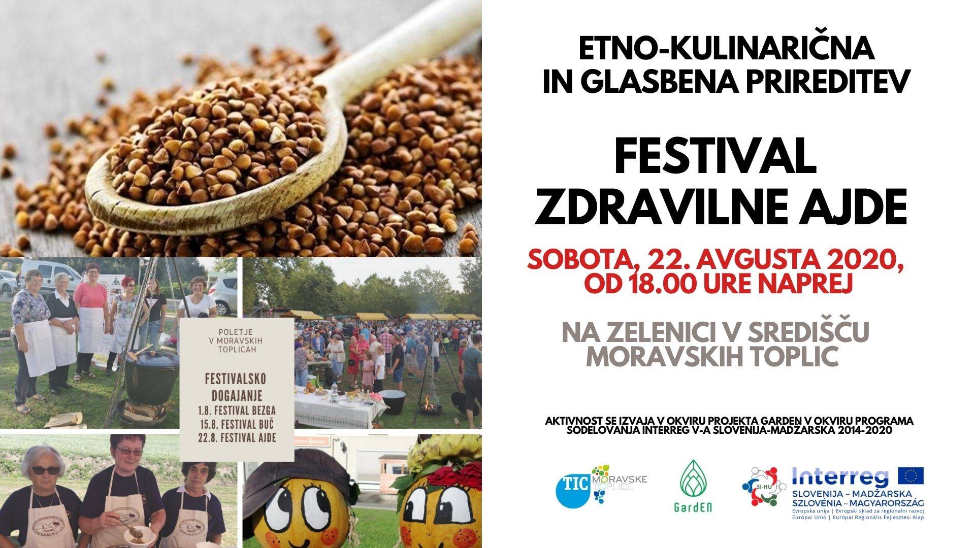 Moravske Toplice, zelenica v središču krajaPoletni sobotni večer - etno-kulinarična prireditev z namenom predstavitve rastline – AJDE. Predstavljene bodo kulinarične dobrote iz ajde, rokodelci in drugi ponudniki na turistični tržnici. Dogodek bo popestren z etno kulturnim programom.