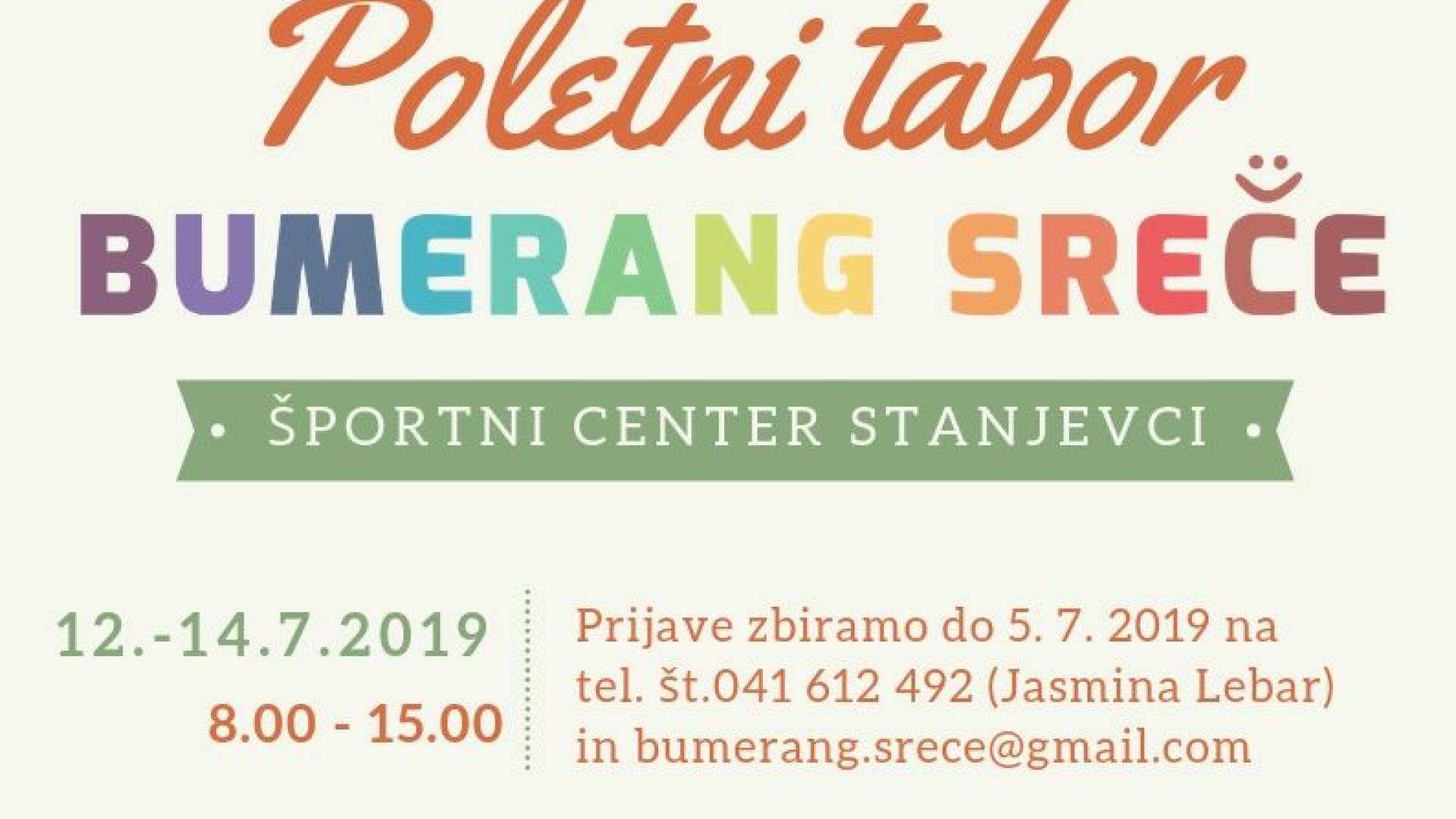 Športni center Stanjevci, 9203 Gornji PetrovciDruštvo Bumerang Sreče organizira 8. Poletni tabor Bumerang Sreče,