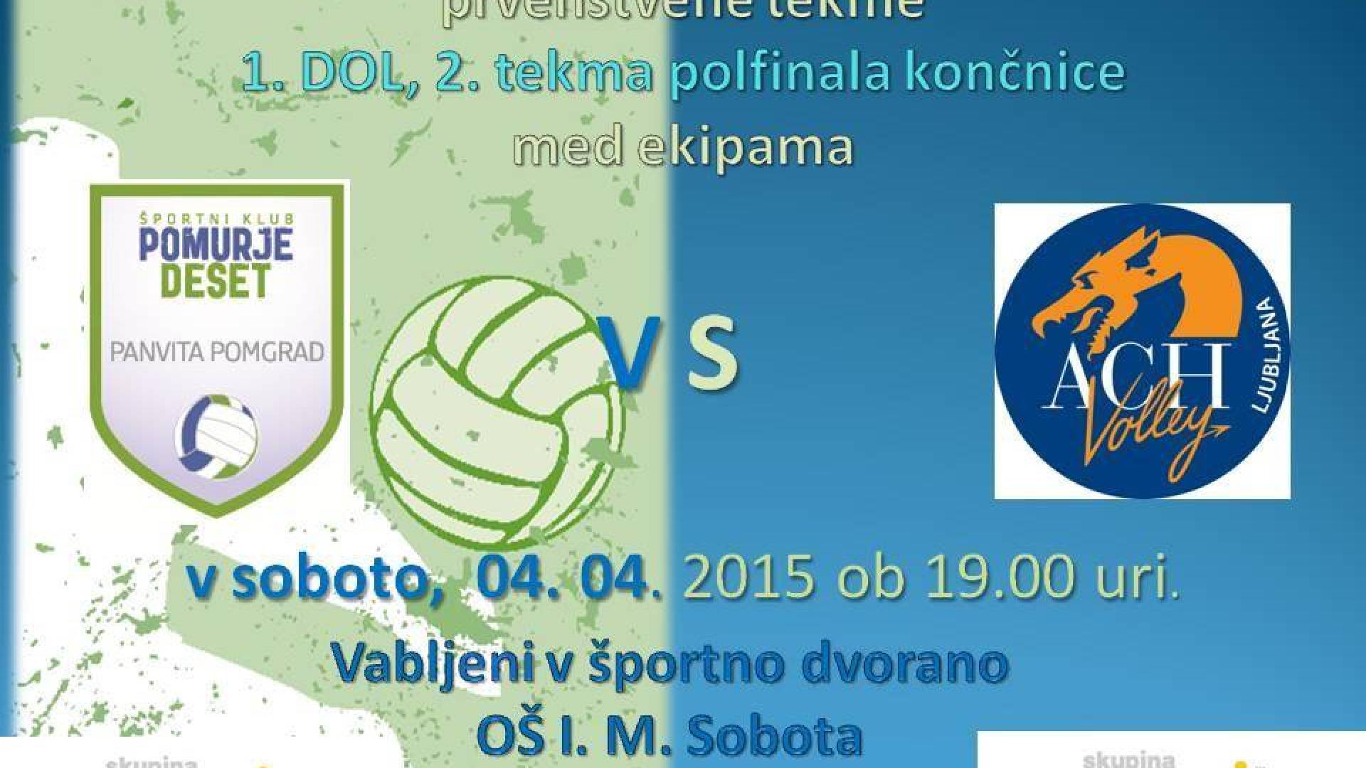 Športna dvorana OŠ I. M. SobotaLjubiteljice in ljubitelji odbojke pozor! Panvita Pomgrad se je uvrstila v boj za medaljo. V Mursko Soboto prihaja ACH Volley, aktualni državni prvak! Panvita Pomgrad se bo z ljubljansko ekipo pomerila v športni dvorani I. osnovne šole Murska Sobota v soboto, 4. aprila ob 19. uri.