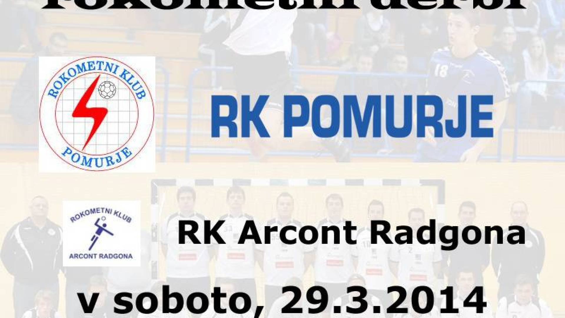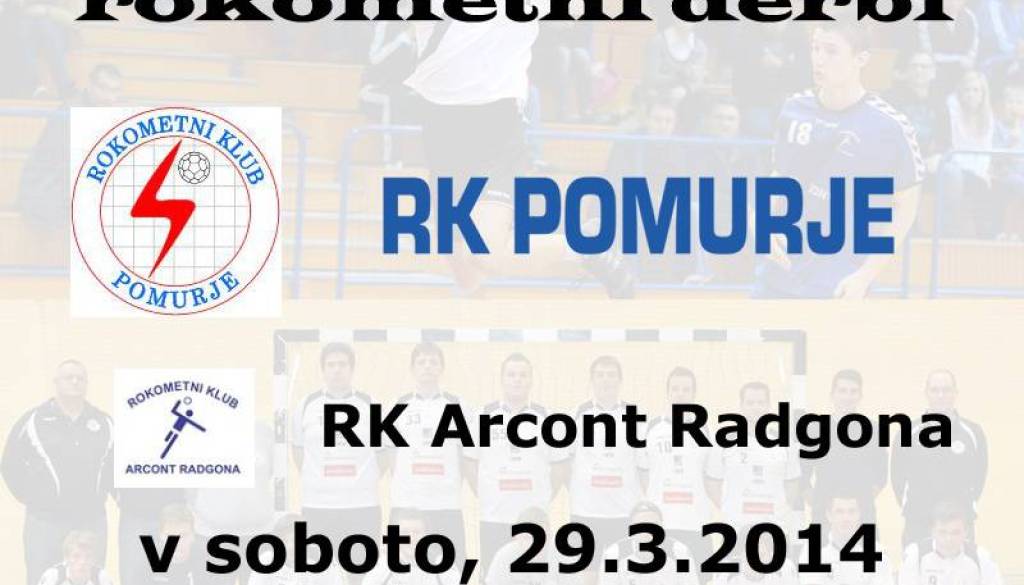 Športna dvorana OŠ III Murska SobotaVeliki pomurski rokometni derbi med domačimi RK Pomurje in gosti RK Arcont Radgona.
