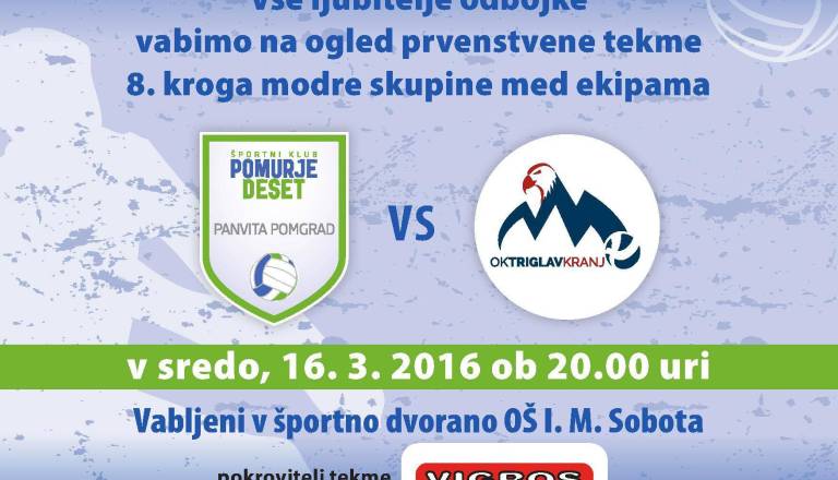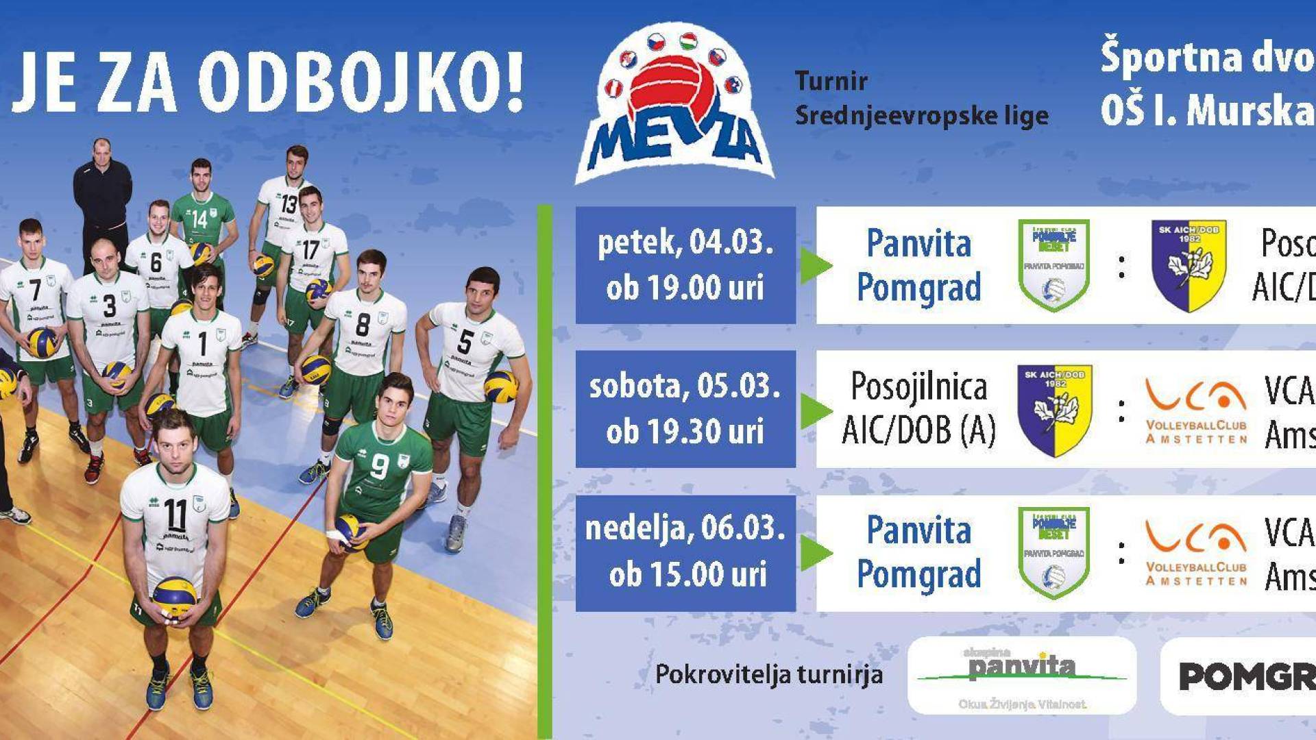 Športna dvorana OŠ I. M. SobotaLjubitelji in ljubiteljice odbojke, pozor! Odbojkarji Panvita Pomgrad bodo po dolgih letih za konec rednega dela tekmovanja na četrtem turnirju srednjeevropske lige (MEVZA) v gostili odbojkarje Posojilnice Doba in VCA Amstettna NÖ iz Avstrije. Po dolgih letih se bo ponovno v Murski Soboti odvijal evropski turnir Mevza, kateri bo potekal od petka, 4. marca do nedelje 6. marca na Osnovni šoli I. v Murski Soboti.