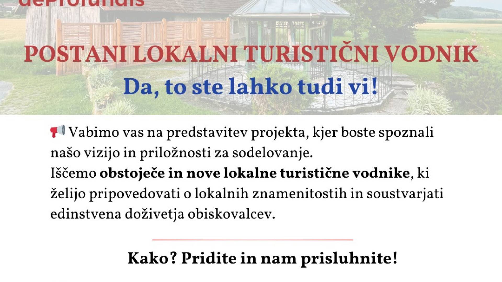 Postani lokalni turistični vodnik gregor1 | 4. marec 2025 11:56 v Ostalo Termin Sreda, 5. marec 2025 16:00 Lokacija Sejna soba Občine Gornja Radgona Postani lokalni turistični vodnik