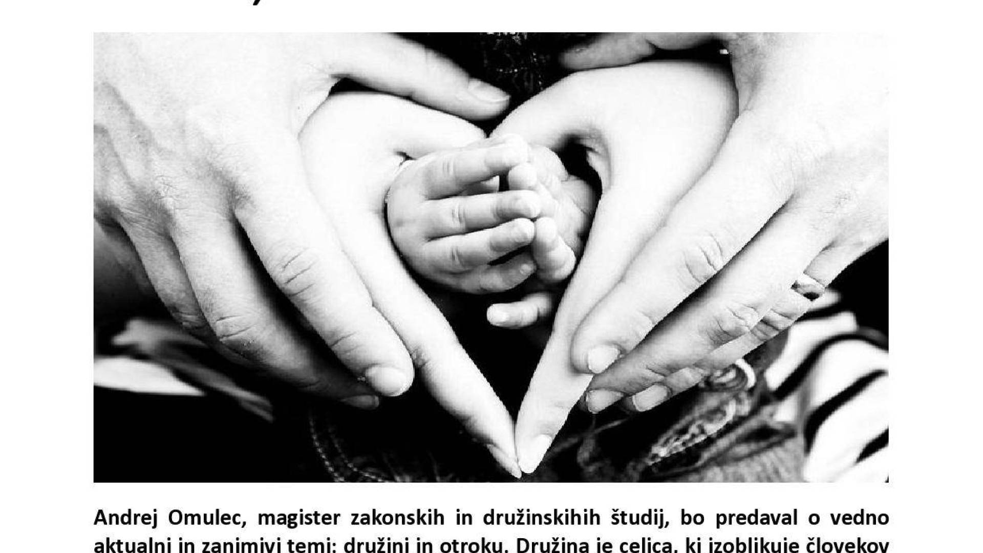 Andrej Omulec, magister zakonskih in družinskihih študij, bo predaval o vedno aktualni in zanimivi temi: družini in otroku.