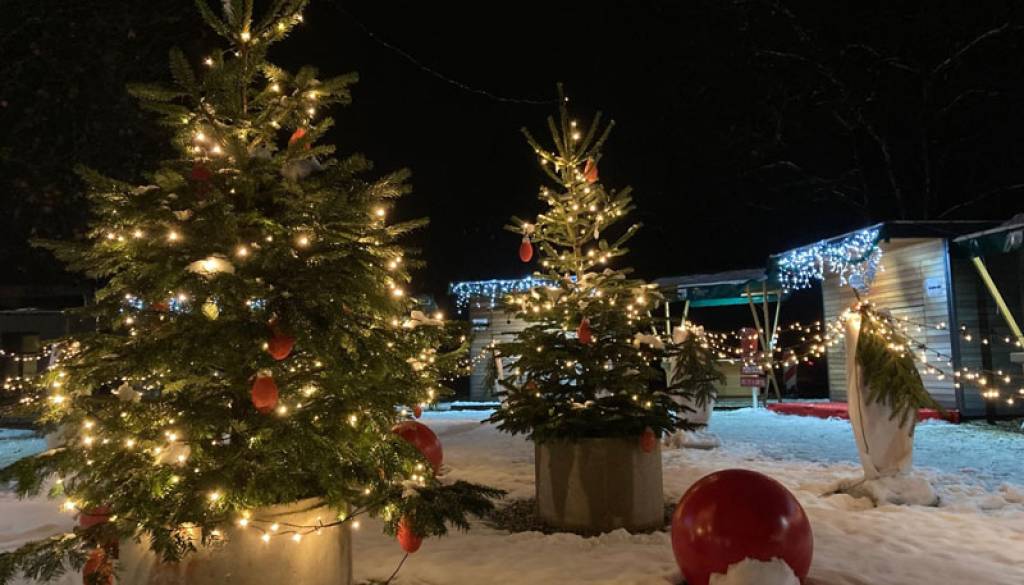Na decembrski praznični tržnici se s svojo ponudbo predstavljajo lokalni ponudniki in rokodelci ob praznični zvočni kulisi.