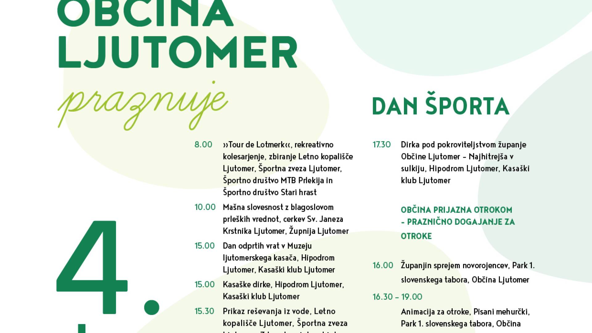Praznik občine Ljutomer Jana Bohar | 28. julij 2023 13:45 v Termin Nedelja, 30. julij 2023 8:00 - Nedelja, 30. julij 2023 18:00 Lokacija Ljutomer Vabljeni!