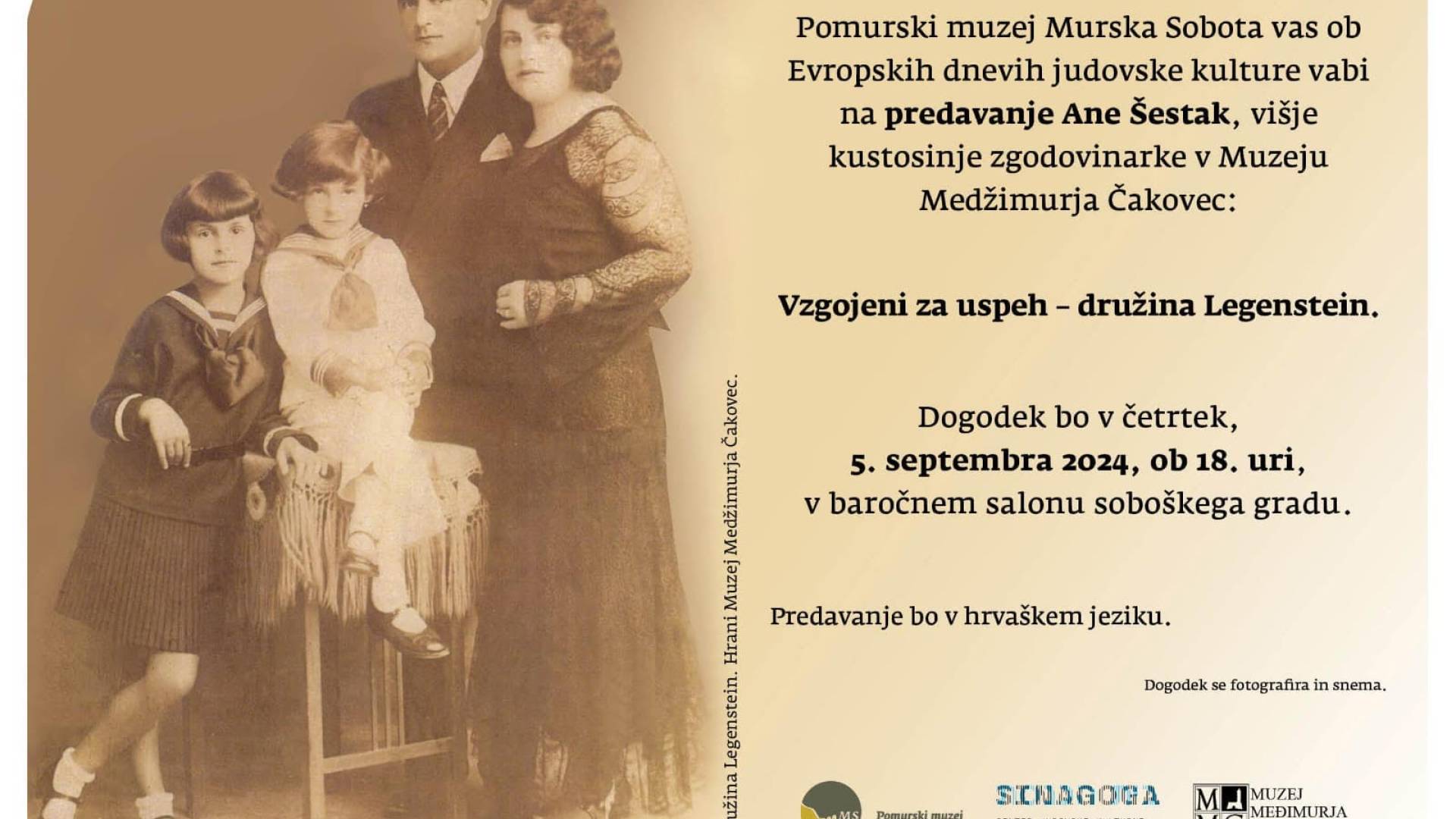 Pomurski muzej Murska SobotaPomurski muzej Murska Sobota vas ob Evropskih dnevih judovske kulture vabi na predavanje Ane Šestak, višje kustosinje zgodovinarke v Muzeju Medžimurja Čakovec: