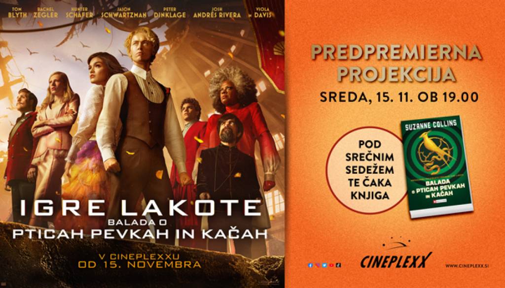 V kinu Cineplexx (Maximus) v Murski SobotiMed prvimi si oglej film IGRE LAKOTE: BALADA O PTICAH PEVKAH IN KAČAH, ki bo predpremierno v sredo, 15. novembra, v vseh naših kinih!