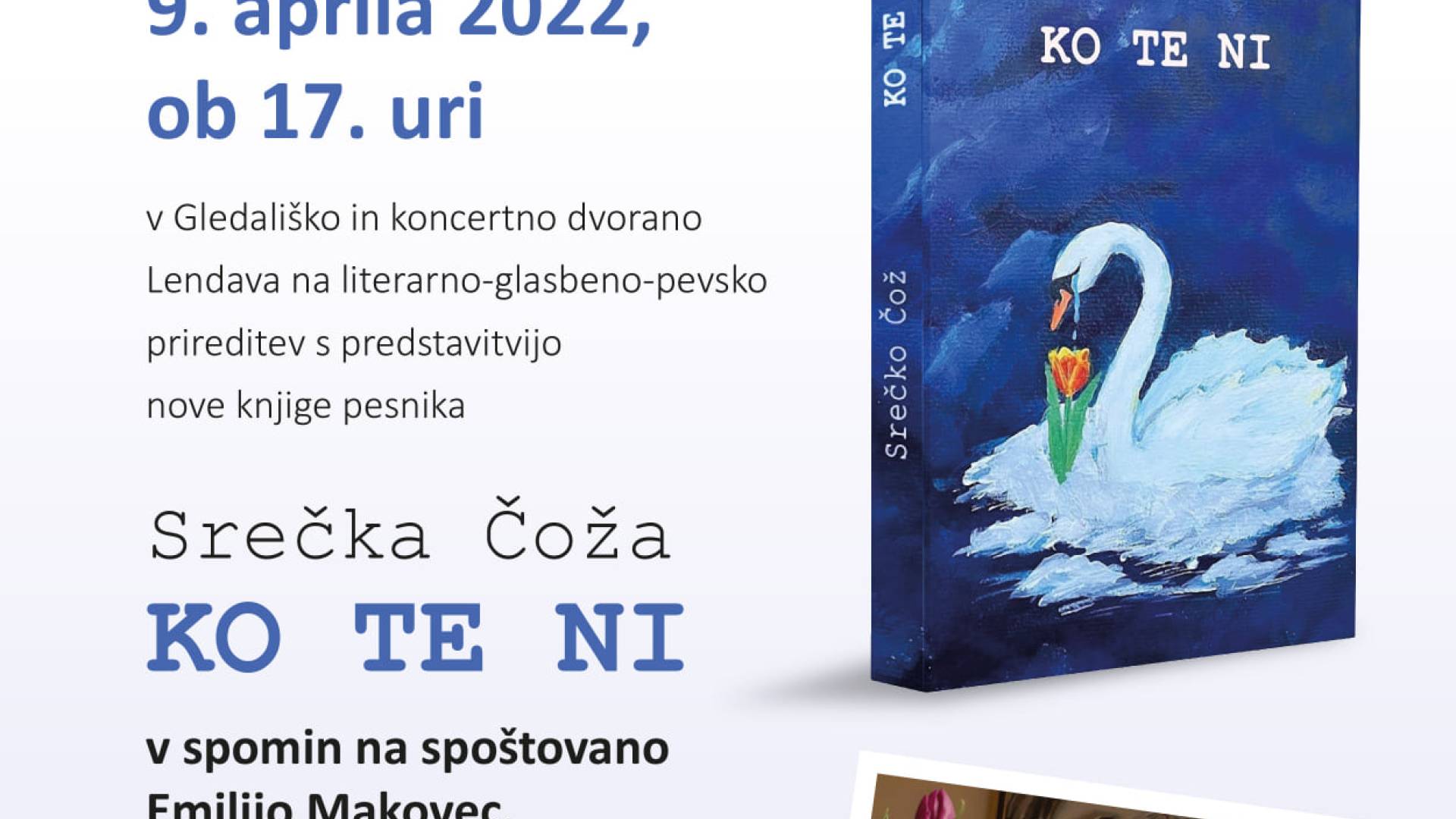 s predstavitvijo nove knjige pesnika Srečka Čoža KO TE NI