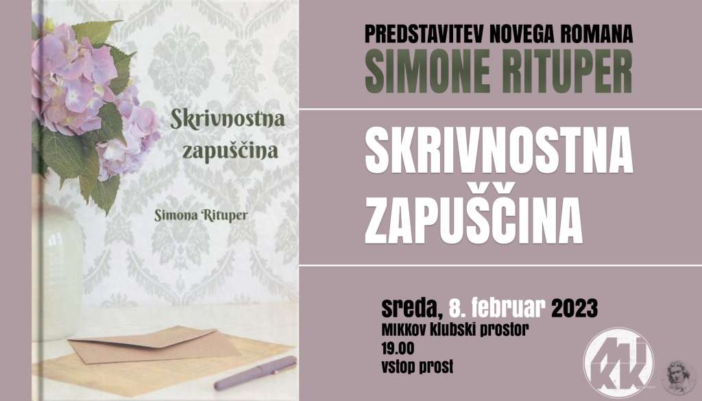 šš š¬š„šØšÆšš§š¬š¤šš¦ š¤š®š„šš®š«š§šš¦ š©š«šš³š§š¢š¤š® vas vljudno vabimo na predstavitev novega romana Simone Rituper: SKRIVNOSTNA ZAPUÅ ÄINA