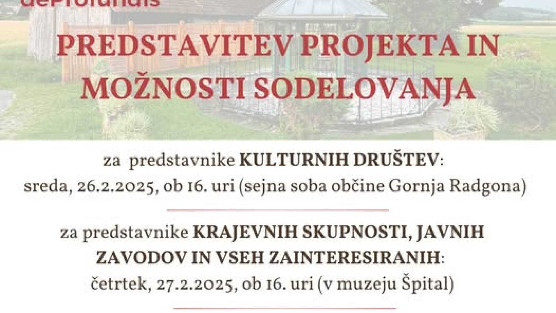 📅 sreda, 26. 2. 2025, ob 16:00 (za predstavnike KULTURNIH DRUŠTEV)
