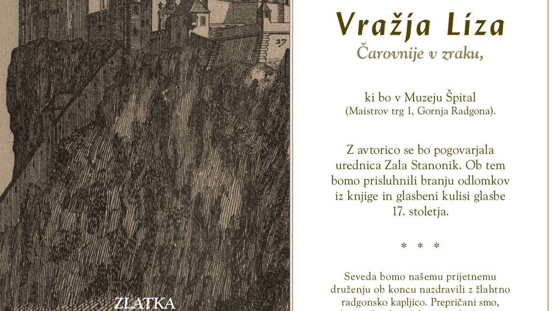 V sodelovanju z Založbo Pivec za vas v Muzeju Špital pripravljamo predstavitev drugega zgodovinskega romana dr. Zlatke Rakovec-Felser Vražja liza Čarovnije v zraku, ki bo v soboto, 3. junija 2017, ob 18. uri v Špitalu.