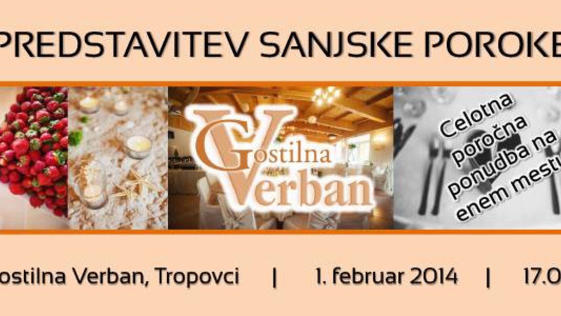 Gostilna VerbanVabljeni na predstavitev sanjske poroke, kjer se bodo predstavili ponudniki storitev, ki bodo poskrbeli, da si boste enega najpomembnejših dogodkov v življenju zapomnili za zmeraj.