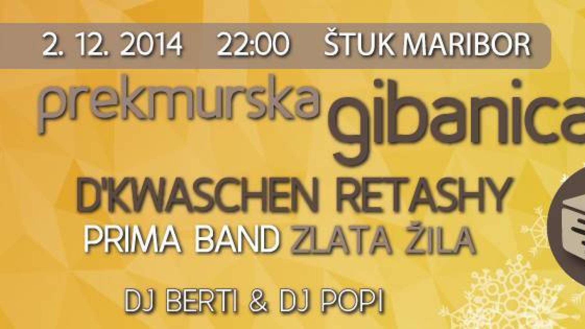 Že 18. Prekmurska gibanica po vrsti bo potekala na tradicionalni lokaciji na mariborskem Štuku, s pričetkom ob 22. uri. Na glasbeni oder bo najprej stopila mlada prekmurska zasedba Zlata žila, sledili bodo Korošci iz skupine Prima band, za vrhunec večera in za zabavo, ki bo v spominu ostala še dolgo potem, pa bo poskrbela vsem Prekmurcem odlično poznana skupina D'Kwaschen Retashy. Slednja se tako po treh letih ponovno vrača na prizorišče Prekmurske gibanice. V preddverju bosta za popularne glasbene ritme skrbela še DJ Berti in DJ Popi.