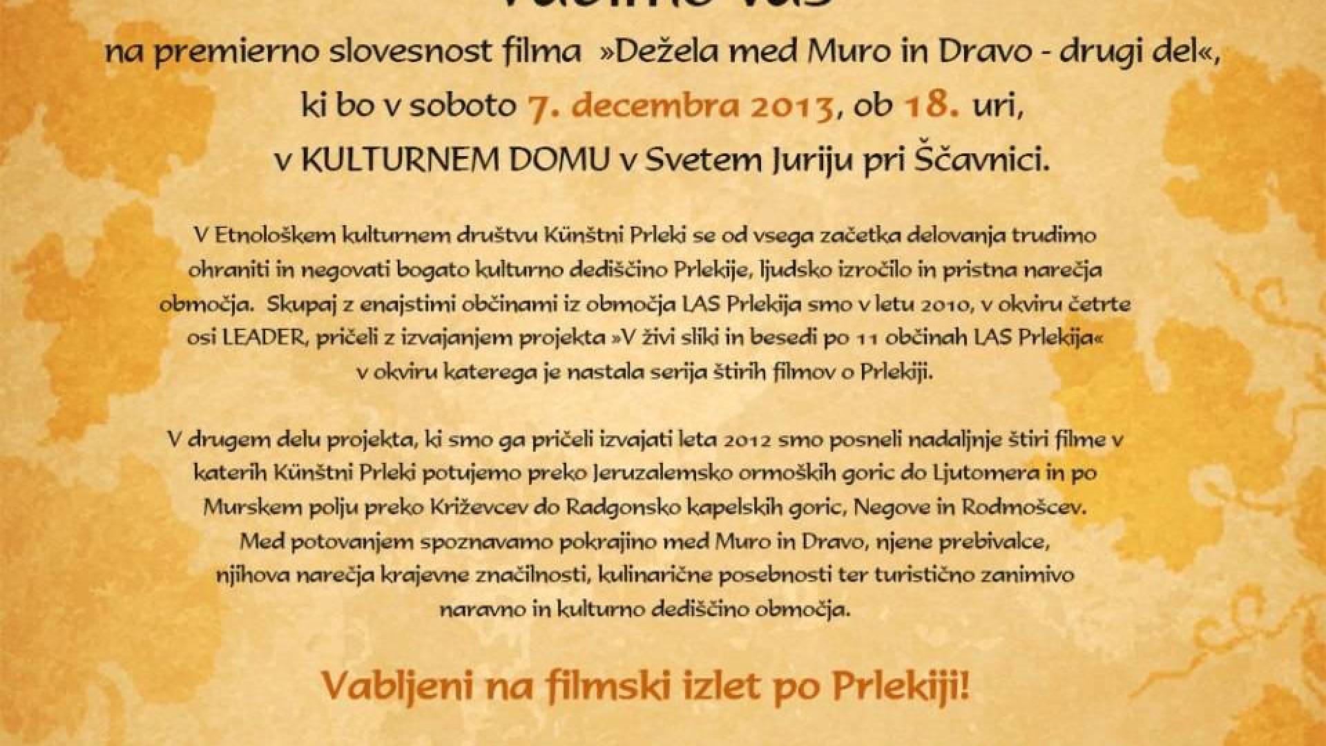 Premiera filma Dežela med Muro in Dravo - drugi del