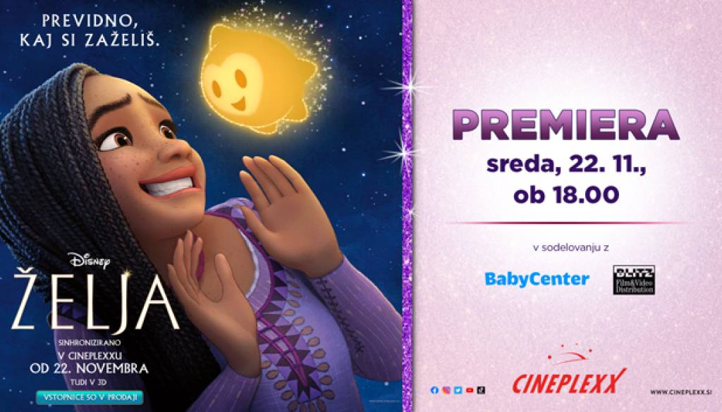 V kinu Cineplexx (Maximus) v Murski SobotiPridruži se nam na novi Disneyevi glasbeni animirani pustolovščini! V vseh naših kinih Cineplexx ne zamudi filma ŽELJA, že v sredo, 22. novembra ob 18:00!