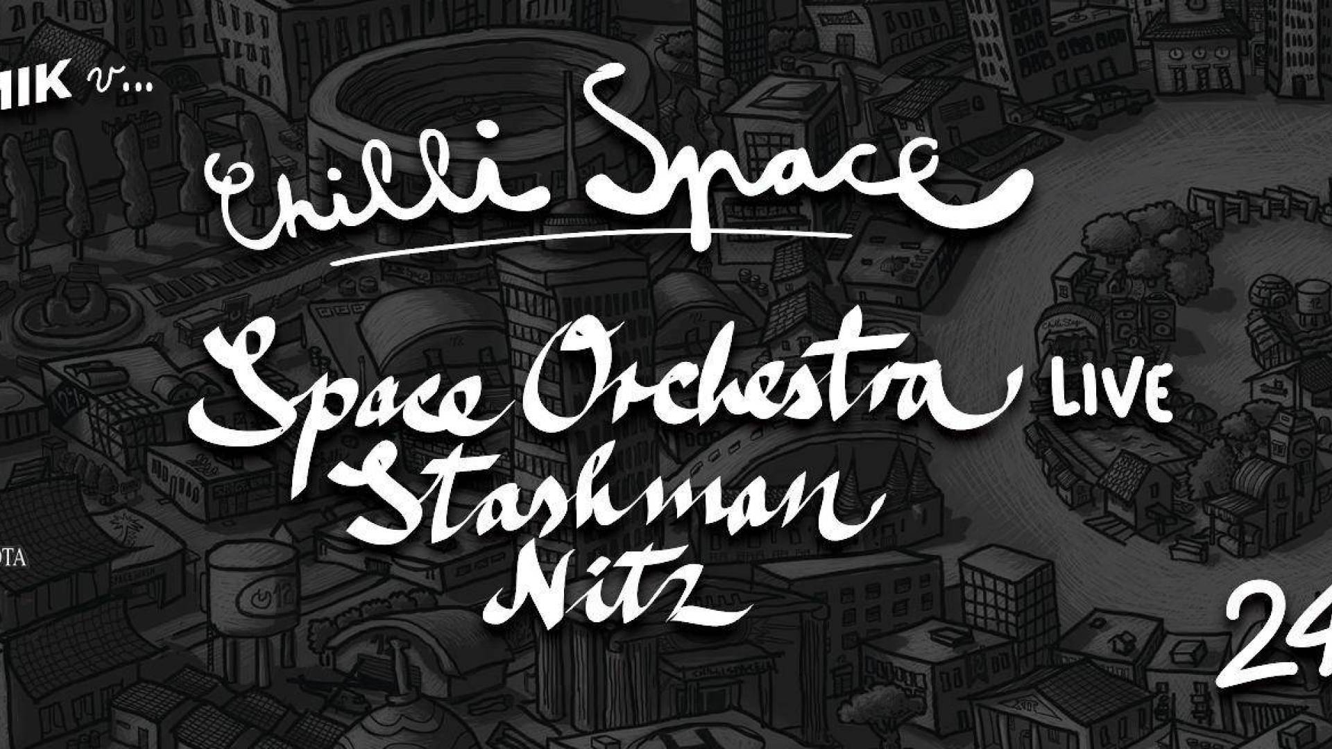 Prvič v prekmurskem središču se bomo imeli možnost sprostiti in naužiti dubby krivin, po katerih uspešno krmari posadka Chilli Space. Najbolj kontinuirani in najobsežnejši domači satelit eksperimentalne elektronike je letošnje štirinajsto kroženje po čili vesolju obeležil z izstrelitvijo dvojnega analognega zapisa, zvočno podobo pa v različnih zasedbah v živo odmerjajo širom naše dežele.