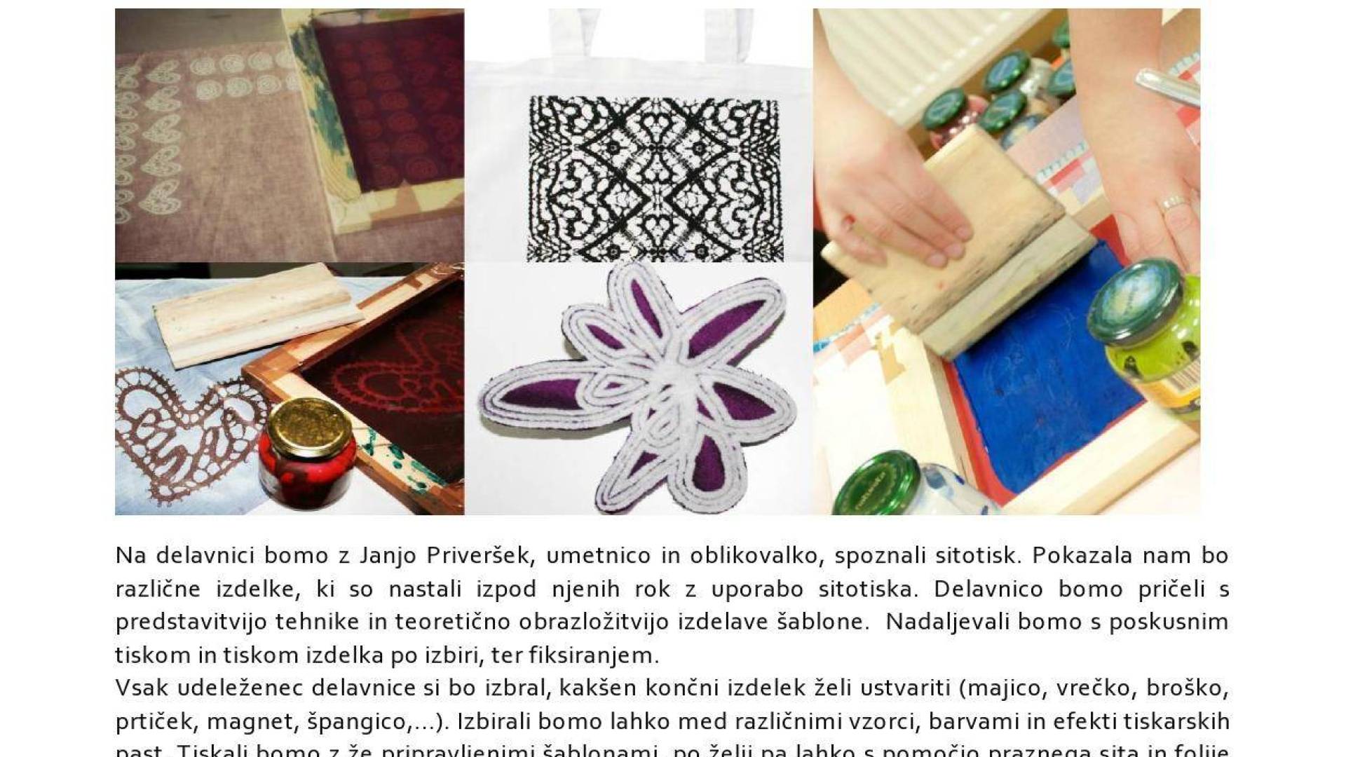 PRESTAVLJENA - Delavnica sitotiska - Janja Priveršek