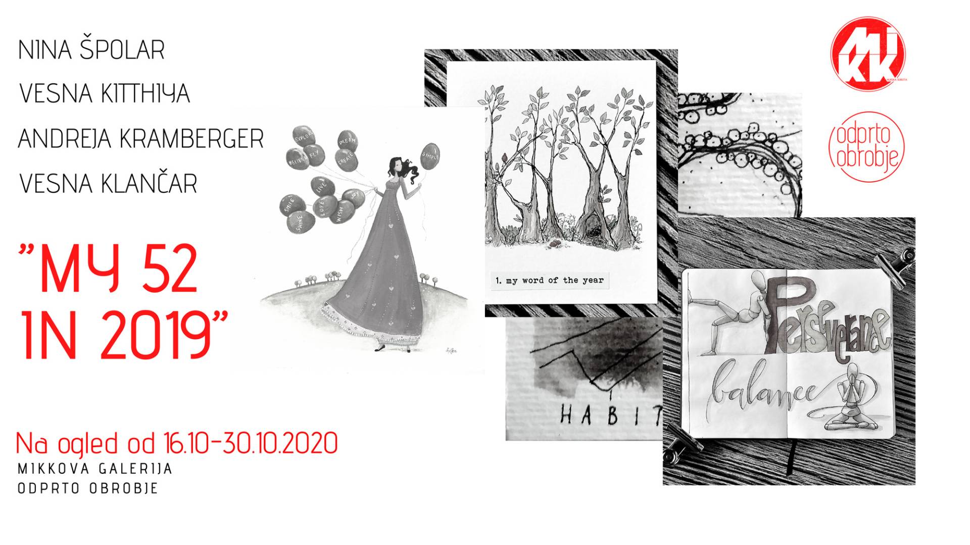 »My 52 in 2019« oziroma 52 vnaprej določenih tem za ustvarjanje v katerem koli mediju je bil mednarodno zastavljen in s spletno skupino podprt celoletni projekt. Na razstavi se predstavljajo štiri ilustratorke, ki so se opogumile stopiti iz varnega zavetja spleta in predstaviti svoja zasebna ustvarjanja. Prvič v tej formi je bil projekt speljan že leta 2017 poteka pa tudi letos.