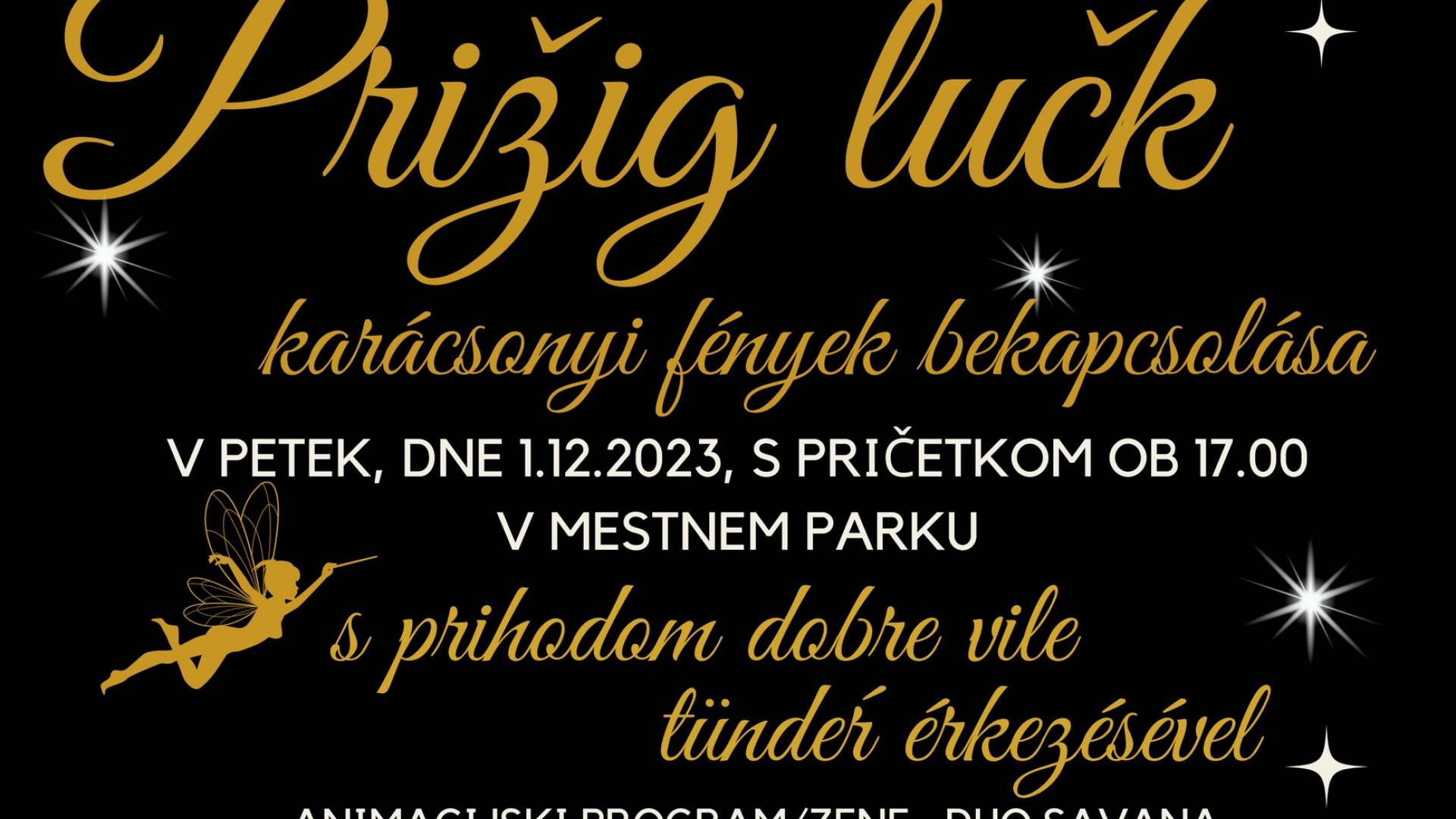 Vljudno vas vabimo na dogodek »Prižig novoletnih lučk«, ki bo v petek, 1. decembra 2023 s pričetkom ob 17.00 uri v mestnem parku Roža Lendave ter na ploščadi pred letnim odrom Gledališke in koncertn dvorane Lendava.