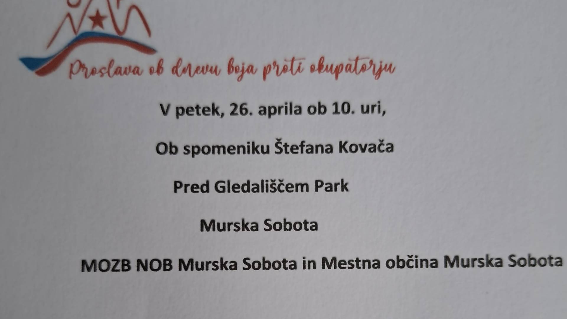 Murska Sobota pred Gledališčem Park, pi spomeniku Štefana KovačaProslava ob dnevu boja proti okupatorju