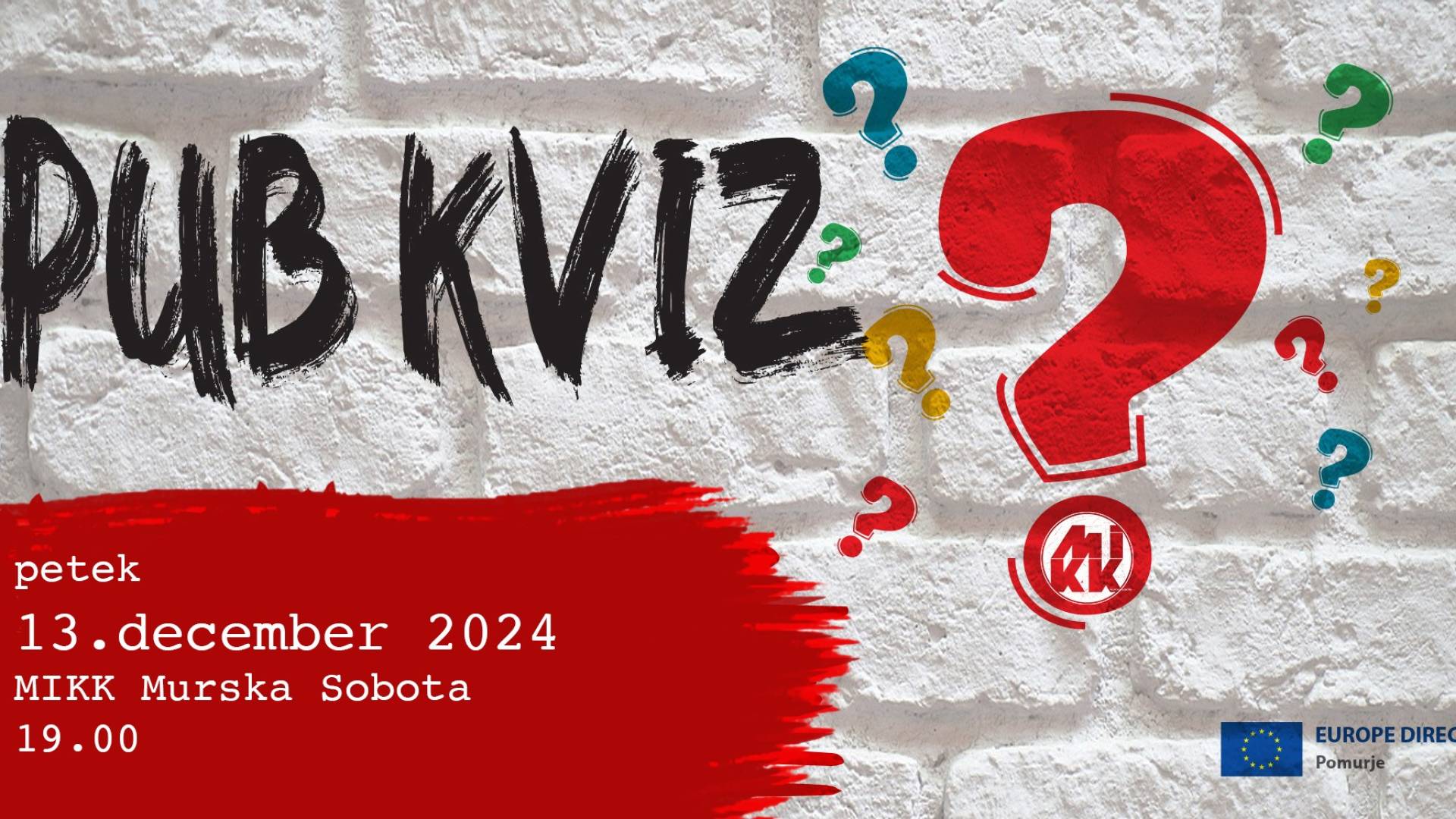 MLADINSKI INFORMATIVNI IN KULTURNI KLUB MURSKA SOBOTA, Trubarjev drevored 4š š©šššš¤, šš. ššššš¦šš«š šššš, šØš šš. š®š«š¢ bo na sporedu zadnji letoÅ”nji š”ššš ššššš§ , ko boste zopet imeli možnost, da pokažete svoje sploÅ”no (ne)znanje v zabavnem in pouÄnem pub kvizu. Dogodek bo potekal v Mladinskem informativnem in kulturnem klubu Murska Sobota. šŖ