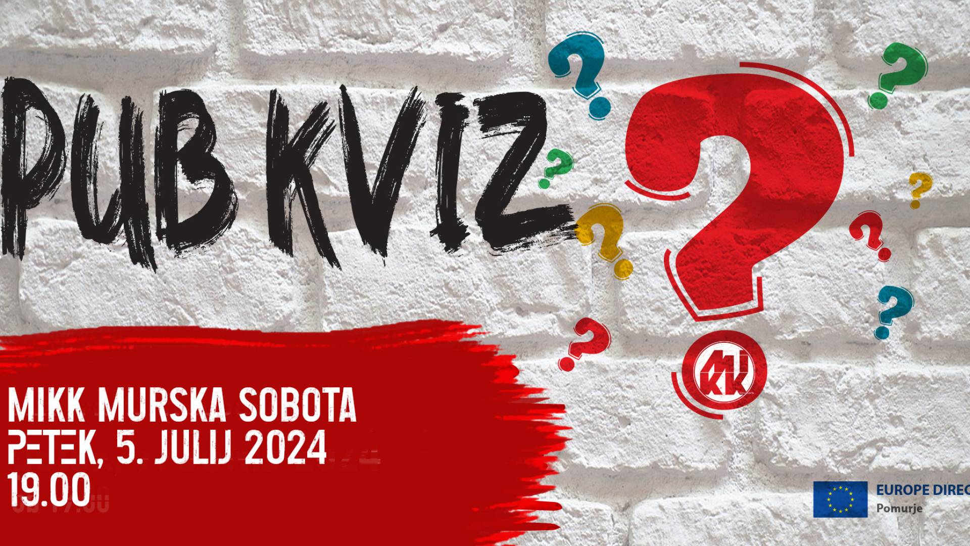 Trubarjev drevored 4, 9000 Murska SobotaV petek, 5. julija 2024, ob 19. uri bo na sporedu naš sedmi letošnji 💡𝐏𝐔𝐁 𝐊𝐕𝐈𝐙🧠, ko boste zopet imeli možnost, da pokažete svoje splošno (ne)znanje v zabavnem in poučnem pub kvizu. Dogodek bo potekal v Mladinskem informativnem in kulturnem klubu Murska Sobota. 💪