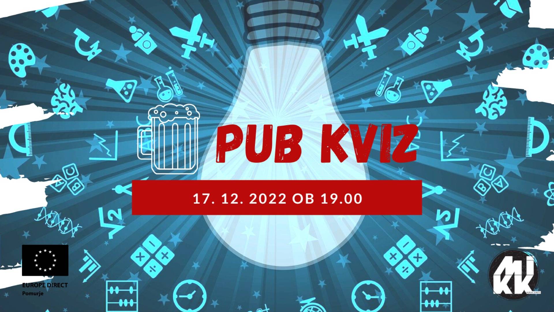 V soboto, 17. decembra, ob 19. uri boste imeli priložnost, da pokažete svoje splošno (ne)znanje v pub kvizu v Mladinskem informativnem klubu Murska Sobota.💡Kviz bo sestavljen iz številnih vprašanj z različnih področij (šport, glasba, umetnost, geografija, zgodovina, EU …), ekipe, ki pa bodo zasedle prva tri mesta bodo nagrajene! 🎅🎁
