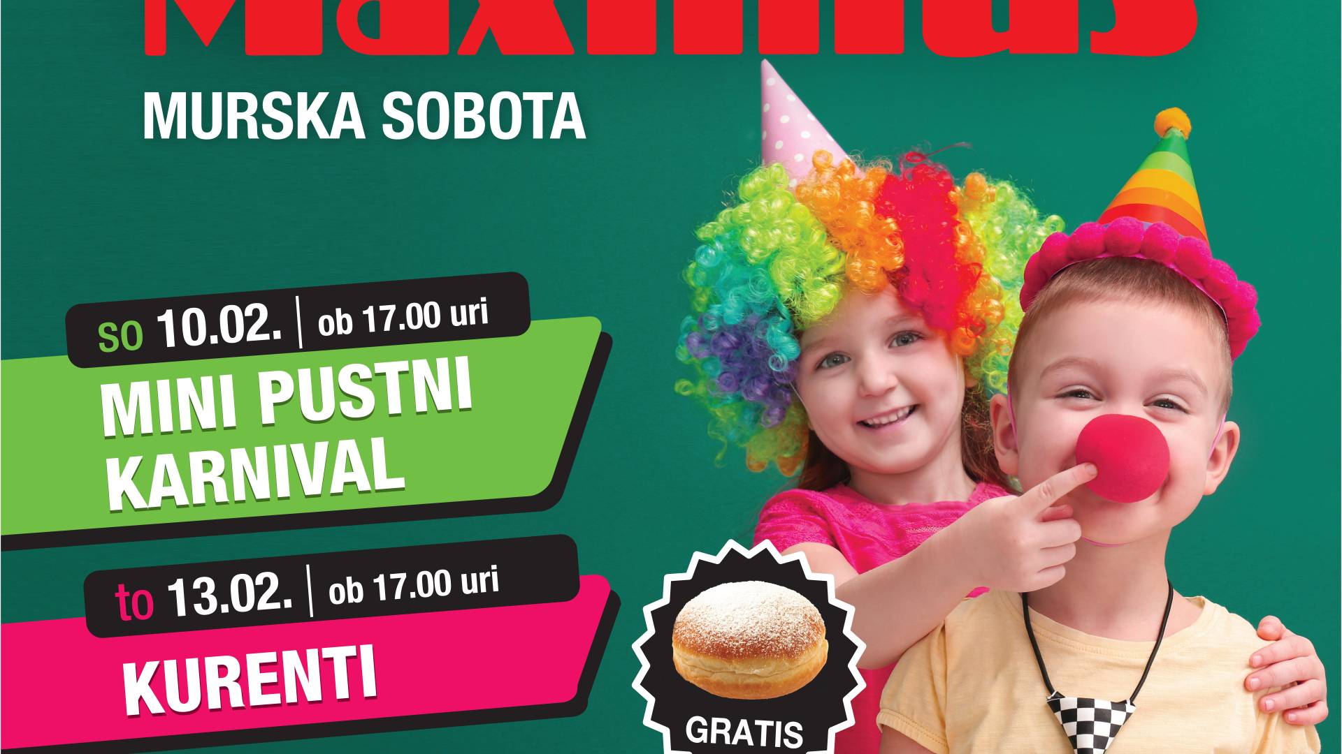 Zaplesali bomo pred otroško igralnico Maxiland, reševali pustne uganke, osvojili kakšno nagradico in se posladkali s pustnimi krofi!