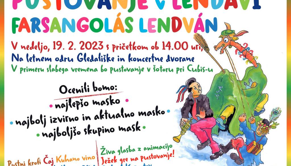 Pustovanje v Lendavi Jana Bohar | 15. februar 2023 11:34 v Termin Nedelja, 19. februar 2023 14:00 Lokacija Gledališka in koncertna dvorana Lendava Vabljeni