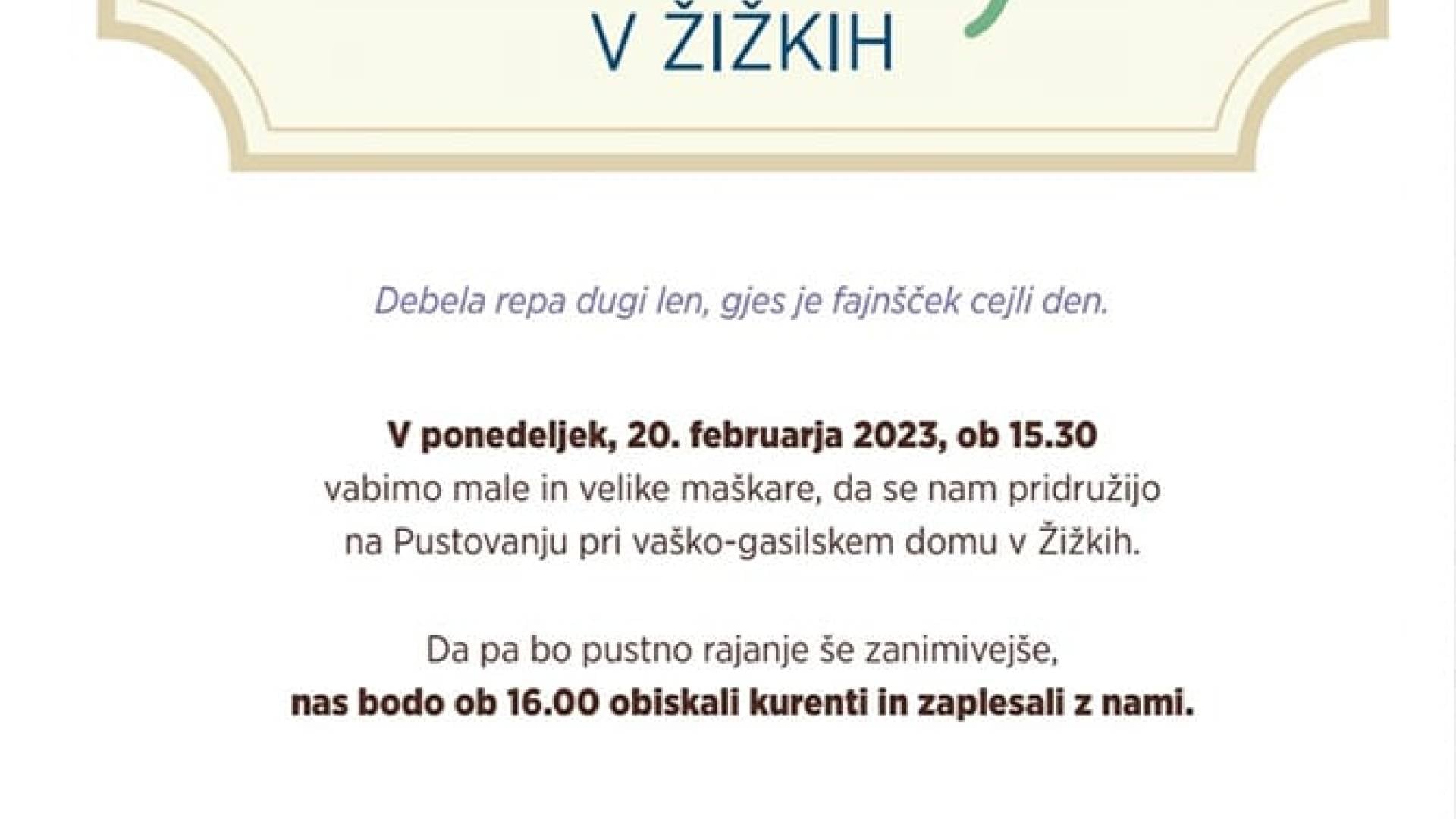Vaško-gasilski dom ŽižkiVabljeni na pustovanje v Žižke!!