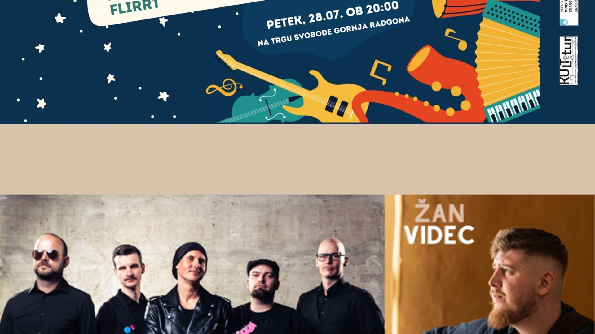 V petek, 28. 7. 2023 bomo na Radgonskem poletju 2023 gostili skupino FLIRRT in mladega glasbenika ŽANA VIDECA.
