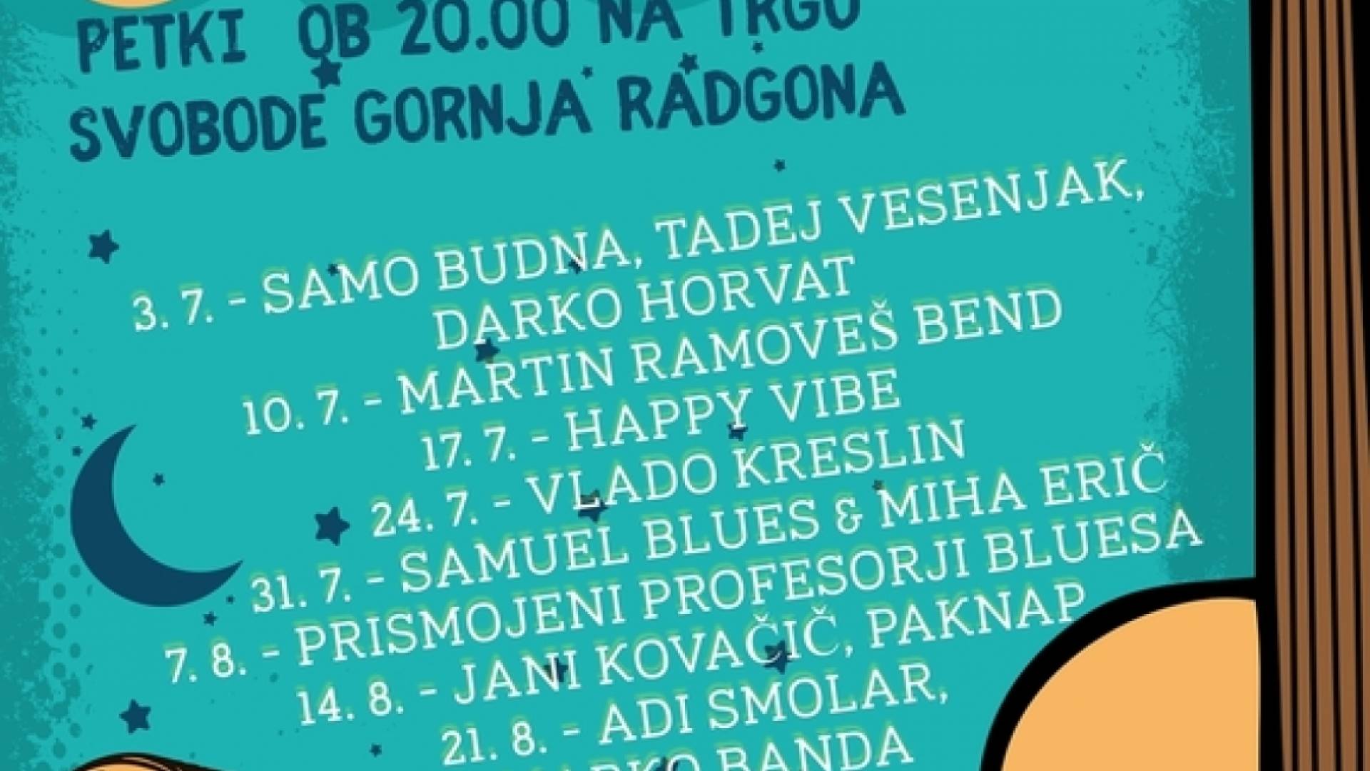 Za novi zanimivi petkov večer Radgonskega poletja bosta poskrbeli Happy Vibe. Happy Vibe sestavljata dve dekleti, Julija "Julie" Fajhtinger (vokal, kitara) ter Tajana Novak (cajon, spremljevalni vokal). Izvajata pester repertoar evergreen skladb s področja popularne, rock in jazz glasbe v akustični preobleki. Obe sta izobraženi glasbenici in pedagoginji - Julija je magistra profesorica glasbe, Tajana pa akademska glasbenica - tolkalistka ter profesorica tolkal. Njun cilj je podati publiki edinstveno glasbeno izkušnjo in jo napolniti s pozitivno energijo.