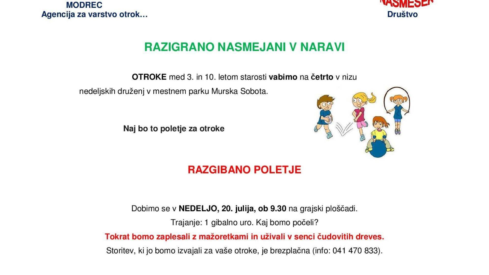 Mestni park Murska SobotaTudi to nedeljo vabimo otroke med 3. in 10. letom starosti, da se nam pridružijo v mestnem parku.