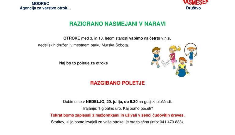 Mestni park Murska SobotaOTROKE med 3. in 10. letom starosti vabimo na tretje v nizu nedeljskih druženj v mestnem parku Murska Sobota.