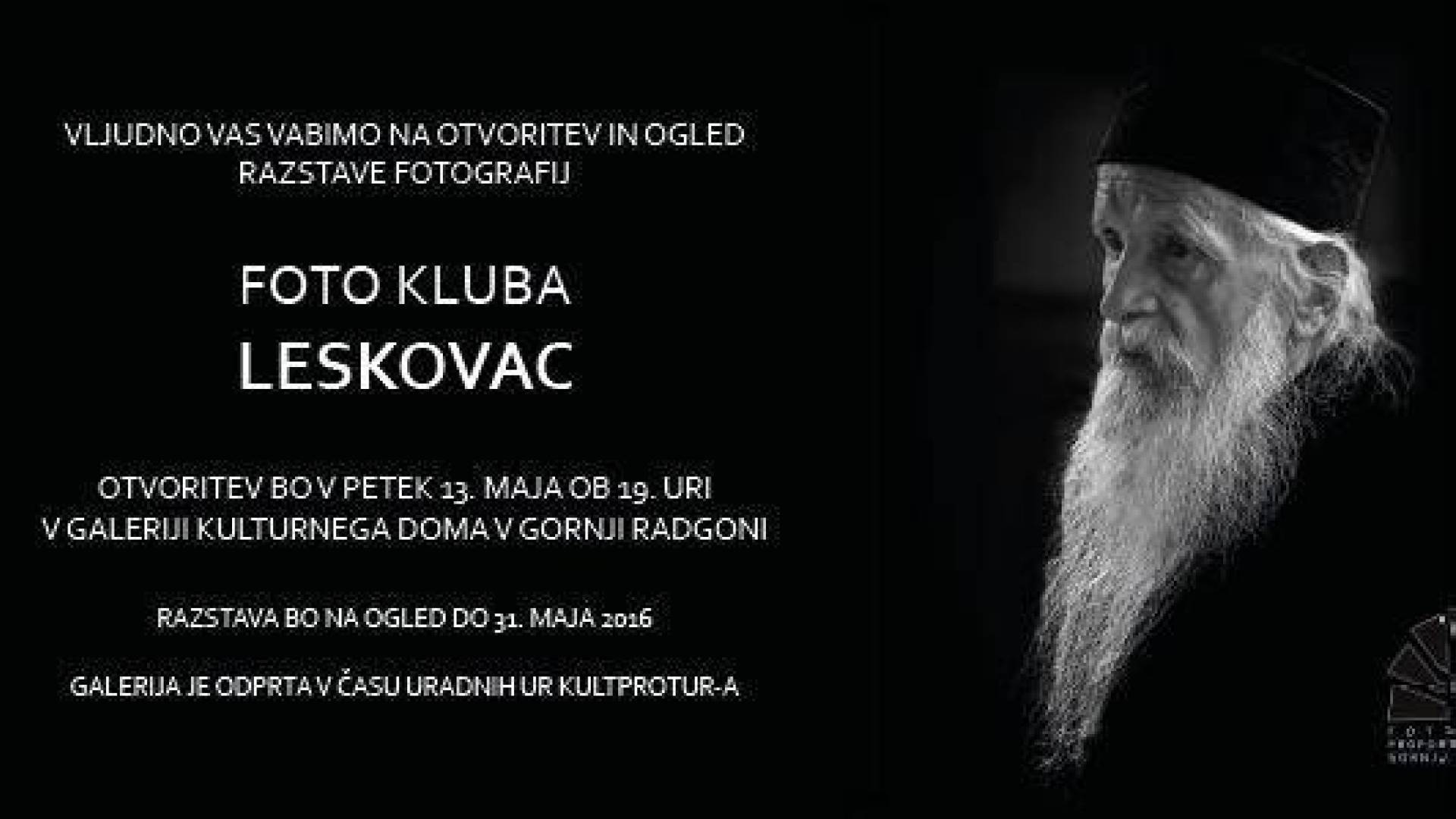 Galerija Doma kulture Gornja RadgonaVljudno vas vabimo na otvoritev in ogled razstave fotografij Fotokluba Leskovac iz Srbije, ki se tokrat predstavlja javnosti s 43. fotografijami 26-tih avtorjev.