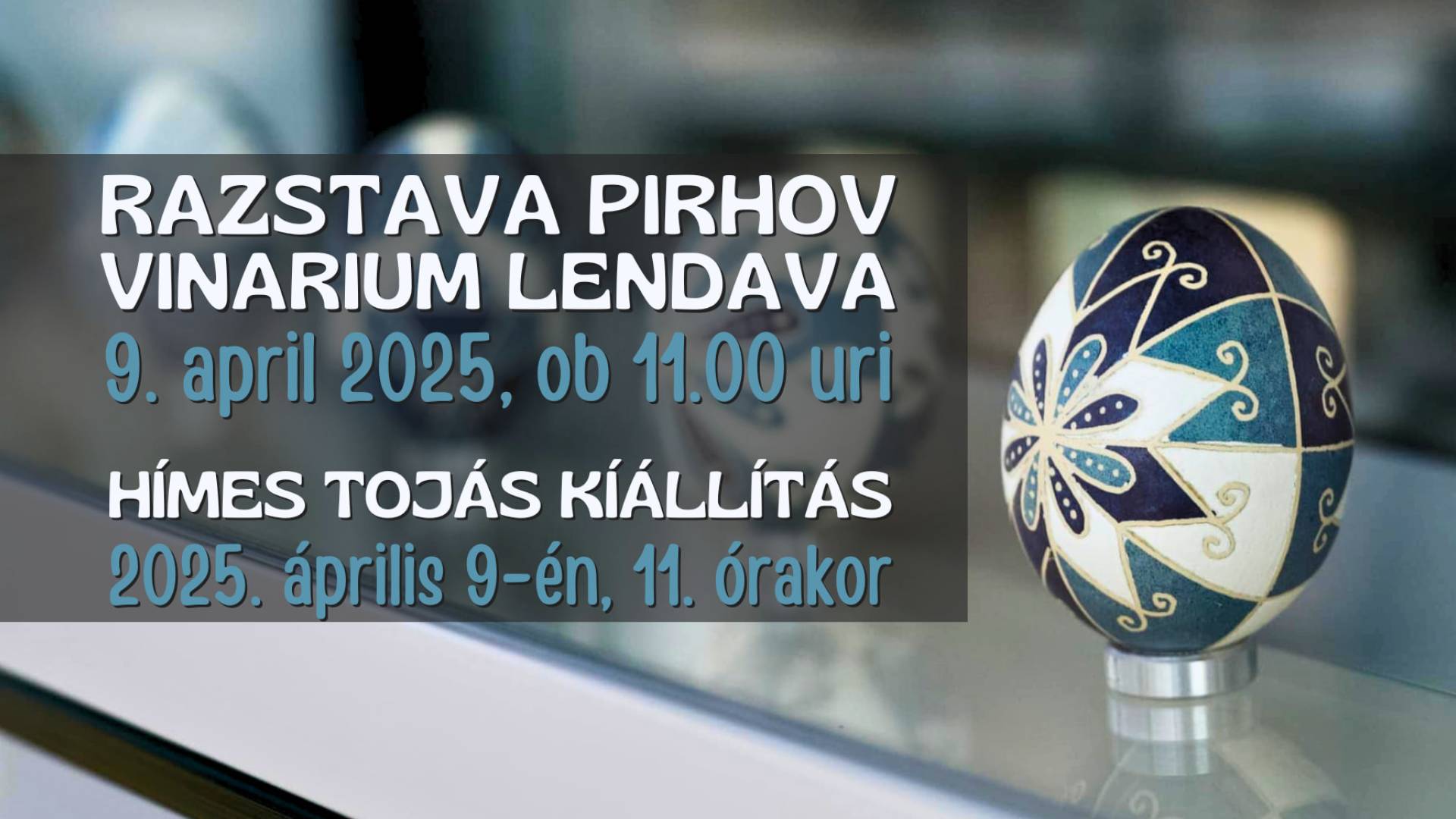 Szeretettel várunk mindenkit a húsvéti hímes tojás kiállításon. A megnyitóra 2025. április 9-én szerdan 11.00 órai kezdettel kerül sor a lendvai Vinárium kilátótoronyban.