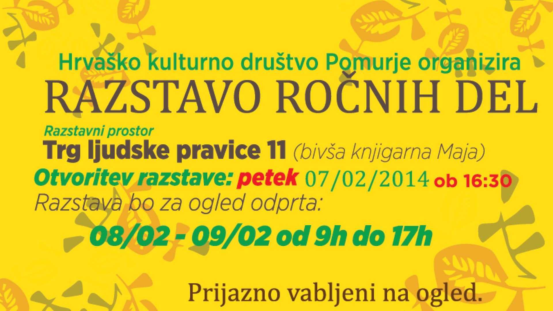 Trf ljudske pravice 11 (bivša knjigarna Maja) LendavaHrvaško kulturno društvo Pomurje organizira