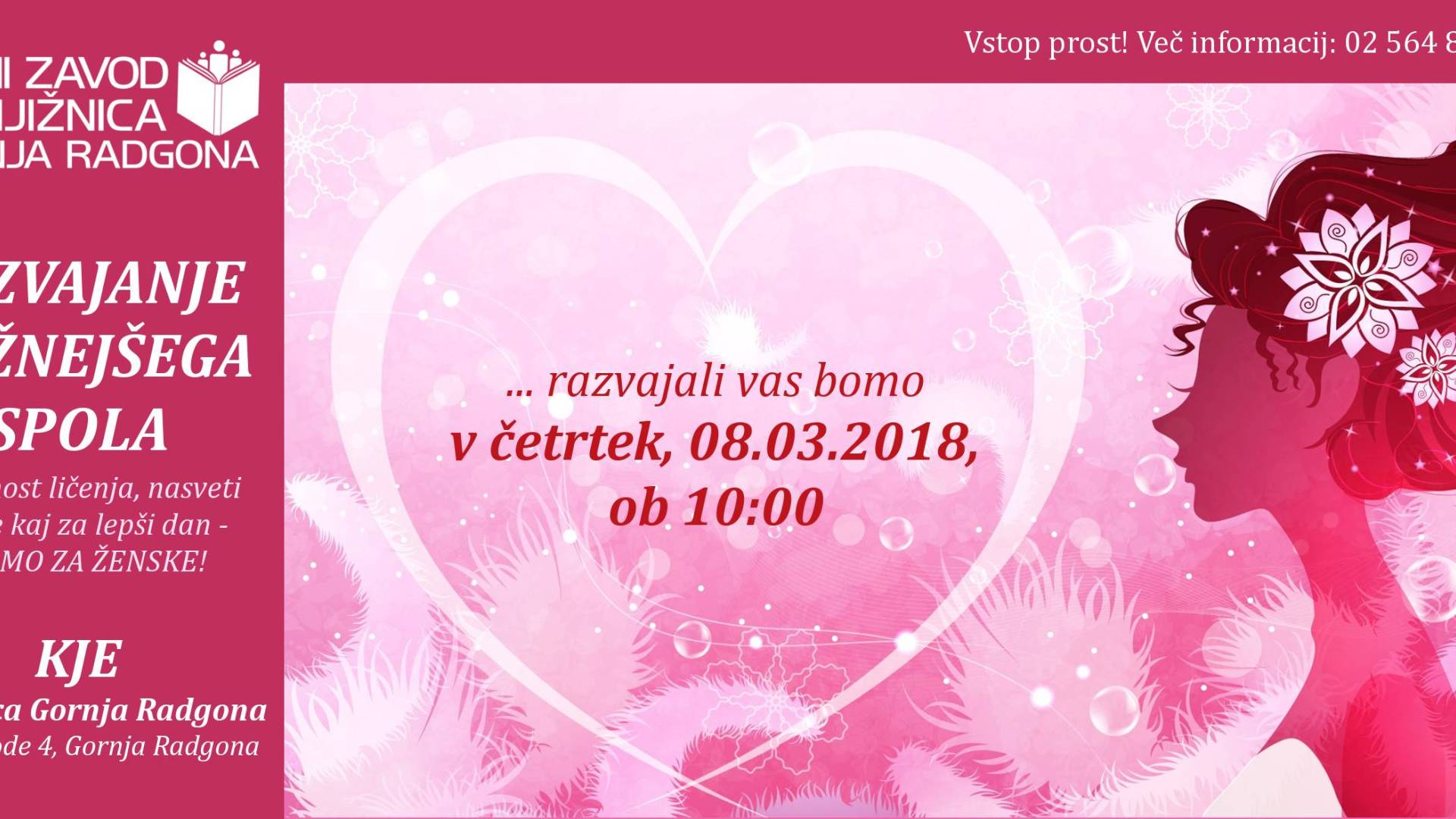 Knjižnica Gornja RadgonaZa 8. marec bomo v prijetnem vzdušju naše knjižnice razvajali nežnejši spol. Knjižnica Gornja Radgona je bo v sodelovanju z lokalno umetnico ličenja ženskam predstavila umetnost ličenja, različne tehnike ličenja, podala nasvete o ličenju in naličila eno izmed srečnic.