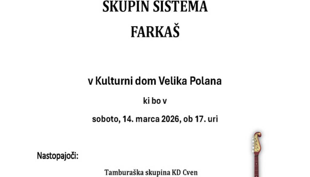 FARKAŠ v Kulturni dom Velika Polana, ki bo v soboto, 14. marca 2026, ob 17. uri