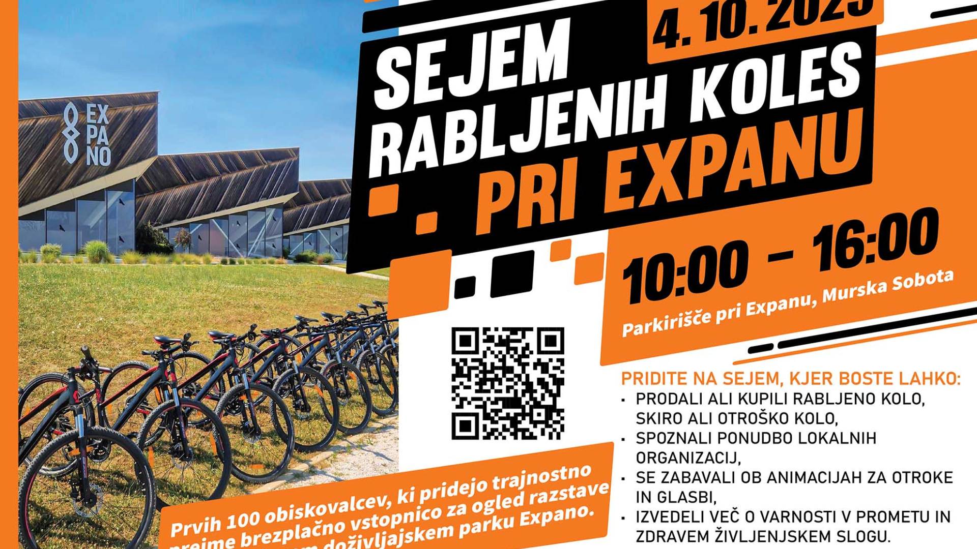 Expano Murska SobotaPomurski center mobilnosti vabi na regijski sejem rabljenih koles, ki bo potekal v soboto, 4. oktobra 2025, od 10. do 16. ure, na parkirišču pri Expanu v Murski Soboti.