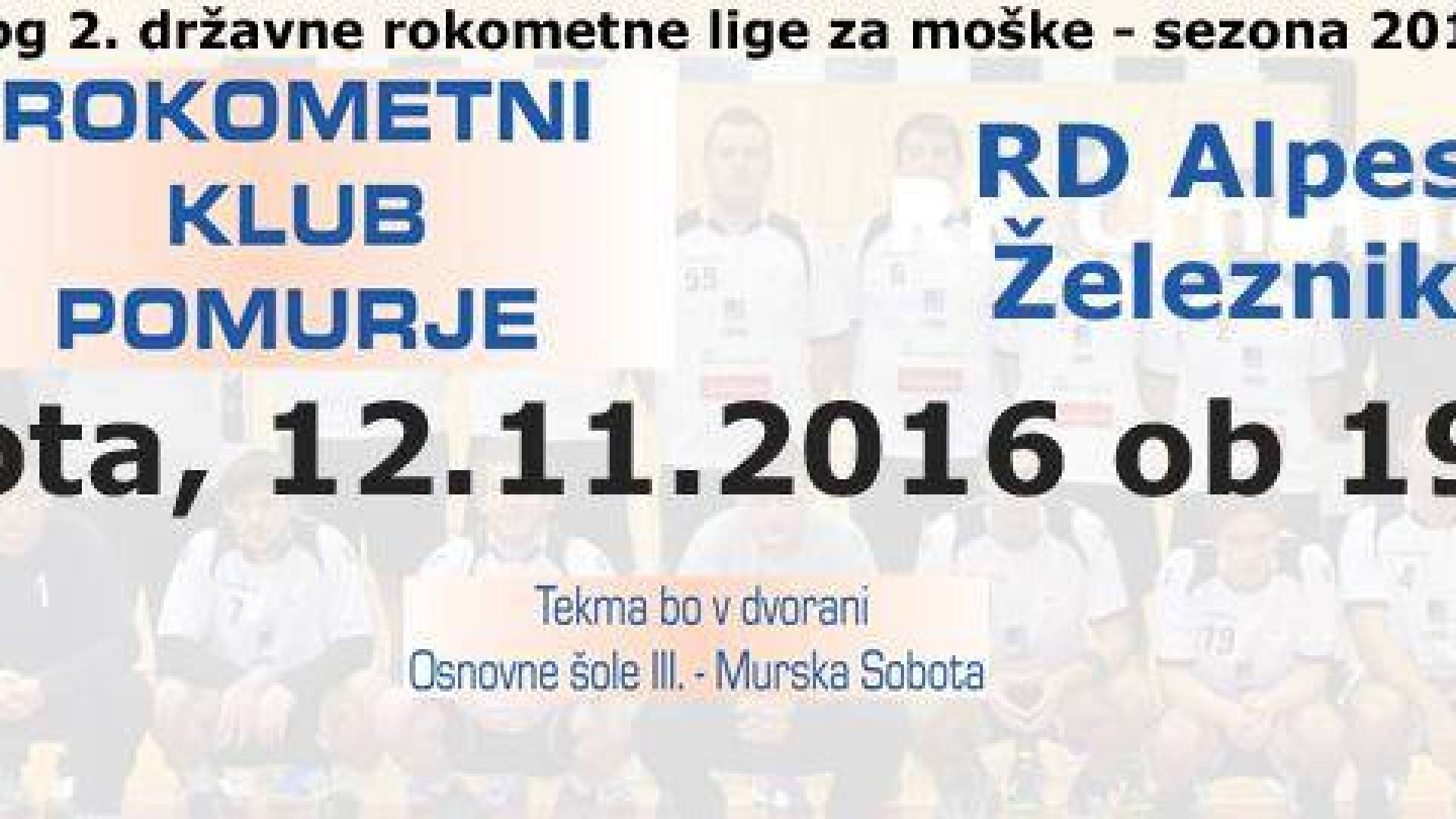 Športna dvorana OŠ III Murska SobotaRokometaši Pomurja po krajšem premoru nadaljujejo prvenstvo v 2. državni rokometni ligi za moške. V domači dvorani jih čaka še ena težka tekma proti bivšemu članu 1B lige. V goste prihaja ekipa Rokometnega društva Alples iz Železnikov.