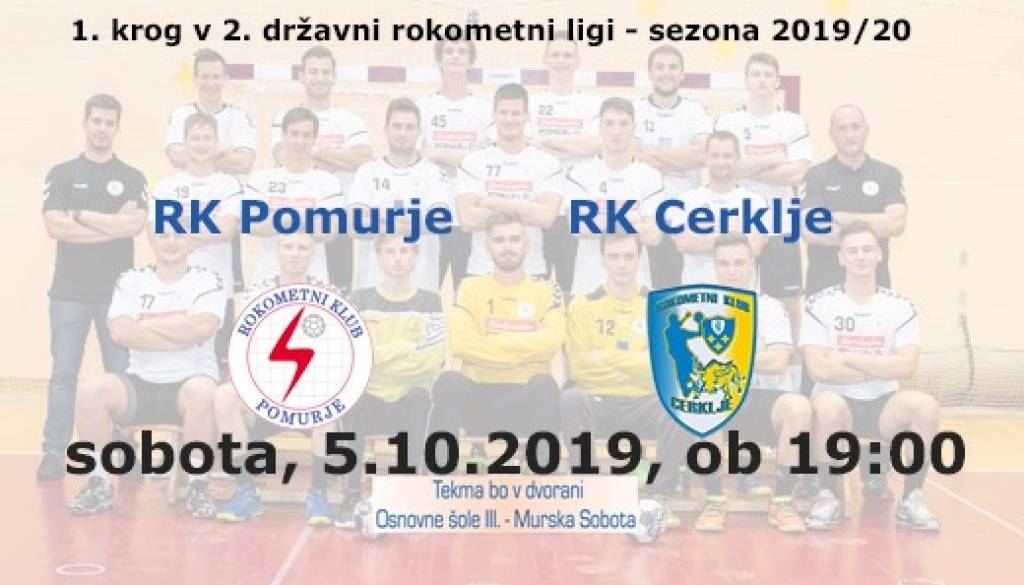 V soboto 5. oktobra 2019 ob 19:00 se bosta pomerila prenovljena ekipa Pomurja in ekipa RK Cerkelj.