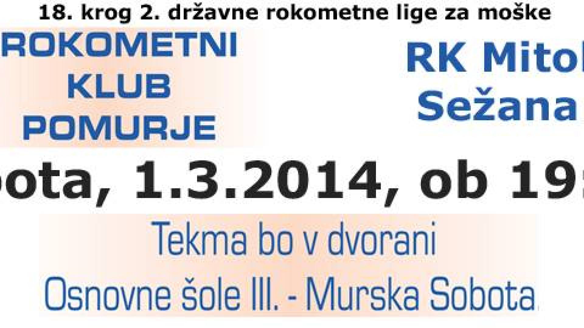 Športna dvorana OŠ III Murska SobotaTekma 17. kroga 2. državne rokometne lige za moške