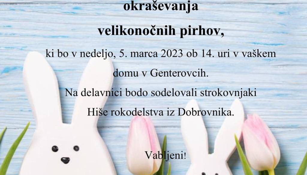 Vaški dom GenterovciRokodelska delavnica okraševanja velikonočnih pirhov.