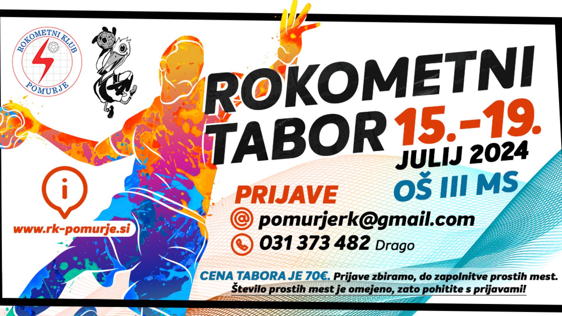 Za tebe in tvoje prijatelje letos organiziramo nepozabno poletno doživetje polno smeha, dobre volje, sproščenih, rokometnih športnih aktivnosti. Na OŠ III Murska Sobota bomo ob spoznavanju rokometnih veščin, kakor tudi ostalih, razvedrilnih aktivnosti preživeli en lep teden poln rokometa in drugih razvedrilnih aktivnosti.