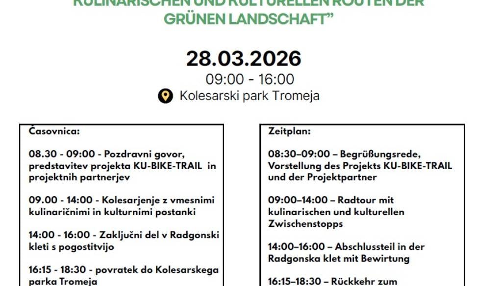 08.30 - 09:00 - Pozdravni govor, predstavitev projekta KU-BIKE-TRAIL in projektnih partnerjev